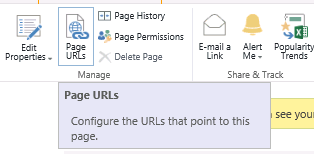 - Sin embargo podemos cambiar esto desde la opción “Page URLs” que tenemos en la sección Page de la Ribbon.