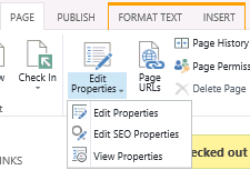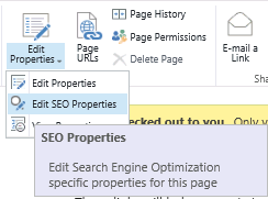Aunque, bajo mi punto de vista, la mejor novedad en cuanto a SEO con las URLs amigables, seguimos con las novedades de SEO que tenemos en SharePoint 2013. Una muy buena también es la posibilidad de, para cada página de nuestro sitio, editar las propiedades SEO: