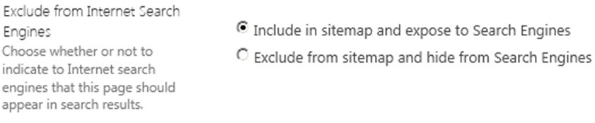 Exclude from Internet Search Engines and sitemap?: Si o no.