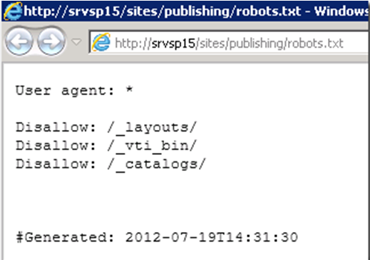 #Sitemap index Sitemap: http://srvsp15:80/sites/publishing/sitemap.xml