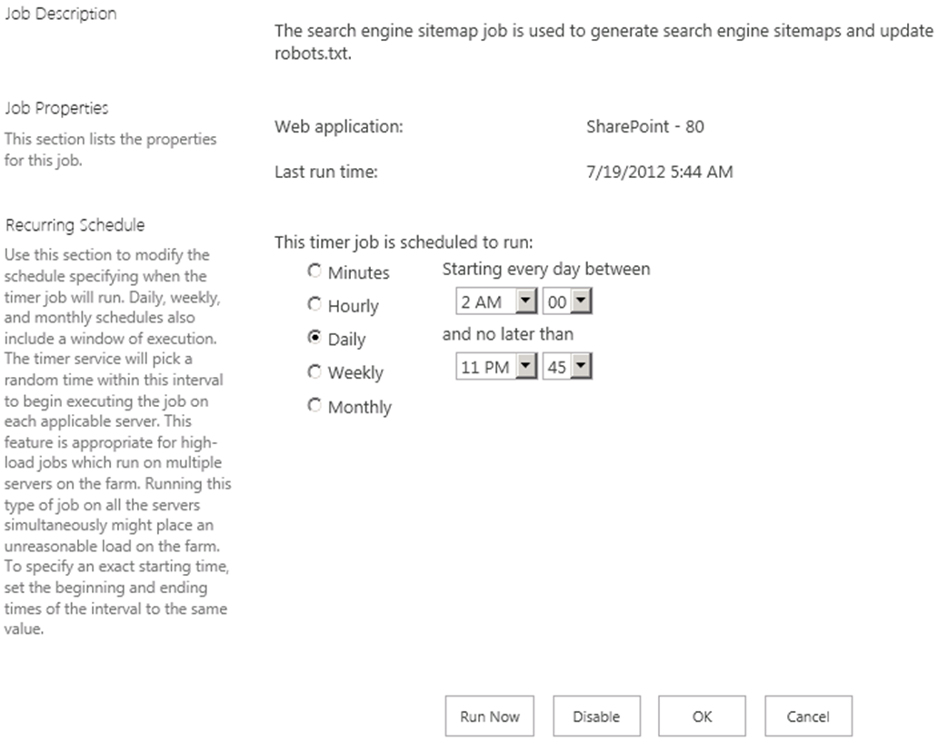 Este proceso de actualización del sitemap lo hace un Time Job llamado “SearchEngineSitemap Job”: