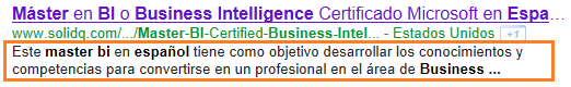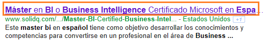 Además debemos de tener encuenta la proximidad entre las palabras. Es decir, que si mi palabra clave es SharePoint BI. Debemos de intentar poner siempre juntas estas dos palabras para que la proximidad afecte positivamente en los rankings de resultados.