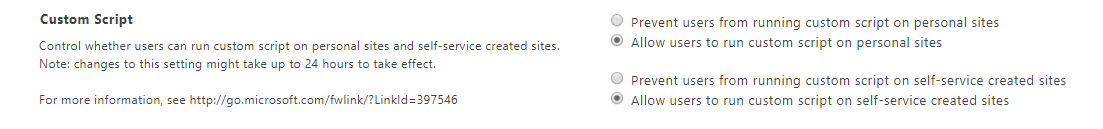 Don’t enable custom scripts unless it’s your last option to recover a feature, having custom scripts enabled can put your tenant at risk.