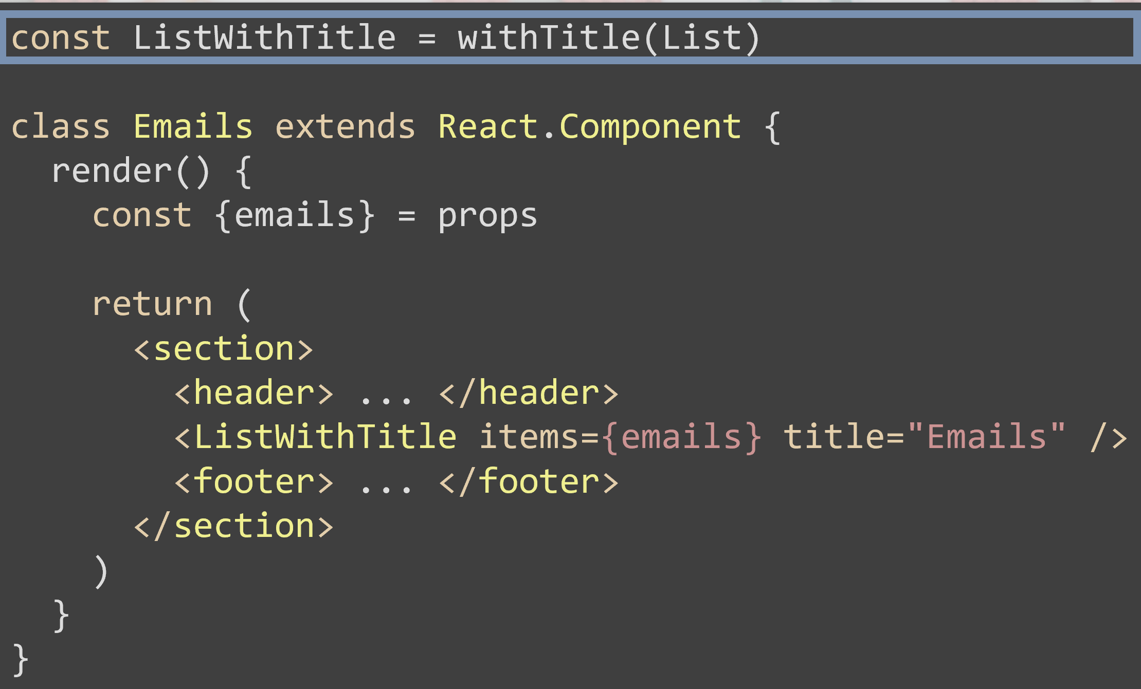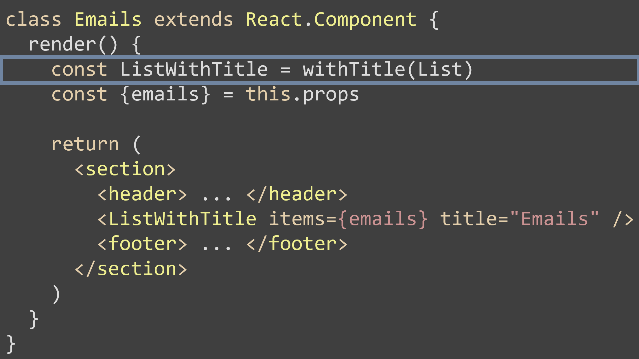 ¿Qué problema podemos tener con este HoC? Pues si este artefacto cuando vamos a hacer uso de él lo hacemos en el método Render del componente que se está implementando, implica que cada que ves que vuelve a pintar este componente estamos creando un nuevo componente. La solución correcta seria extraer este HoC a una variable más global e invocarla cuando vayamos a usarlo.