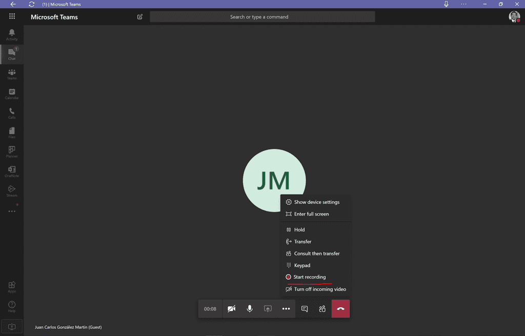 Cuando se realizaba una llamada o video-llamada en un Chat privado 1:1 no era posible realizar su grabación. Microsoft solo permitía grabar llamadas y video-llamadas de Chats privados 1:N. Por suerte contamos desde ya con esta funcionalidad en llamadas y video-llamadas en Chats privados 1:1 de manera que la grabación será guardada en el servicio de Microsoft Stream.