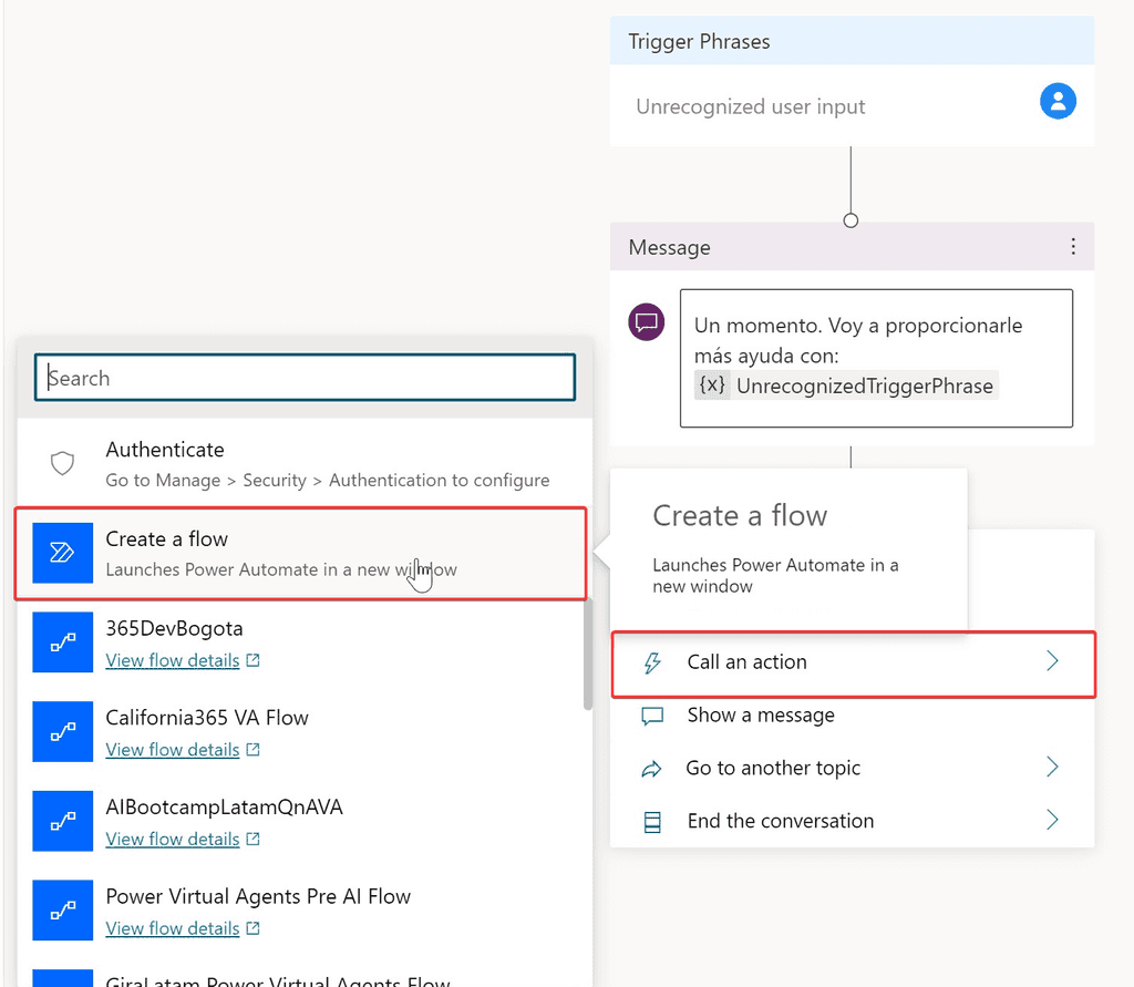 Luego de haber creado nuestro Power Virtual Agent veremos cómo conectarlo con el servicio de QnA Maker utilizando Power Automate. Esto nos permitirá manejar preguntas frecuentes con un servicio cognitivo especializado.