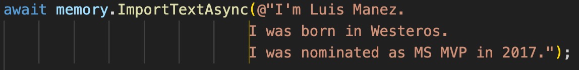 Vamos a ver ahora como podemos indexar información con KernelMemory, teniéndola así optimizada para RAG. El siguiente snippet muestra cómo podemos configurar KernelMemory para utilizar Azure AI Search como DB vectorial, y Azure OpenAI como servicio de AI (con modelos para Embeddings y Chat completions):